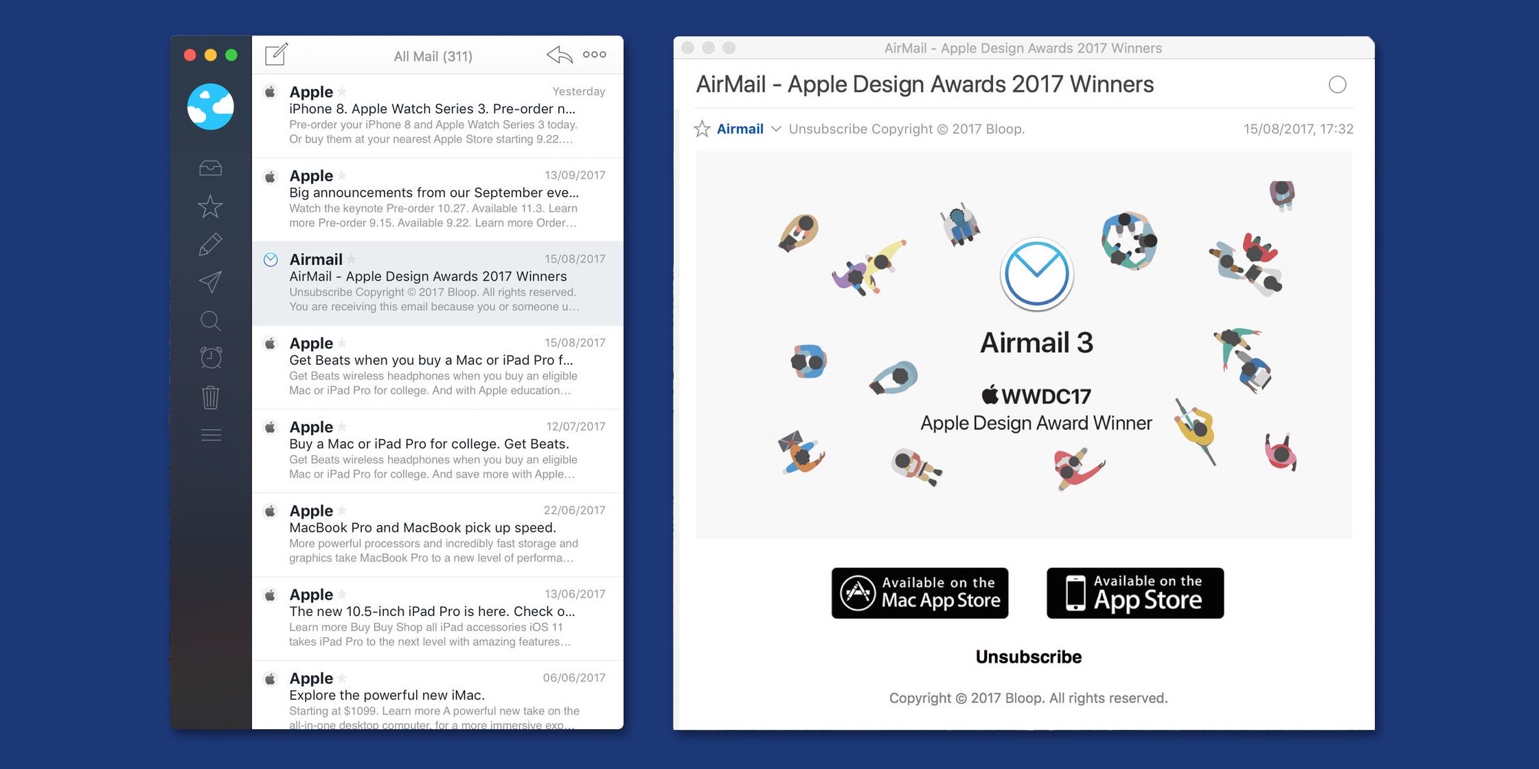 Разработчики Airmail – нескромные ребята, которые открыто заявляют, что их клиент лучший из всех существующих. Этот продукт тесно интегрирован с macOS и поддерживает все ключевые особенности, будь то Handoff (функция мгновенной синхронизации между компьютером, планшетом и смартфоном), язык AppleScript, программу Time Machine или мульти-тач жесты на трекпадах в MacBook.