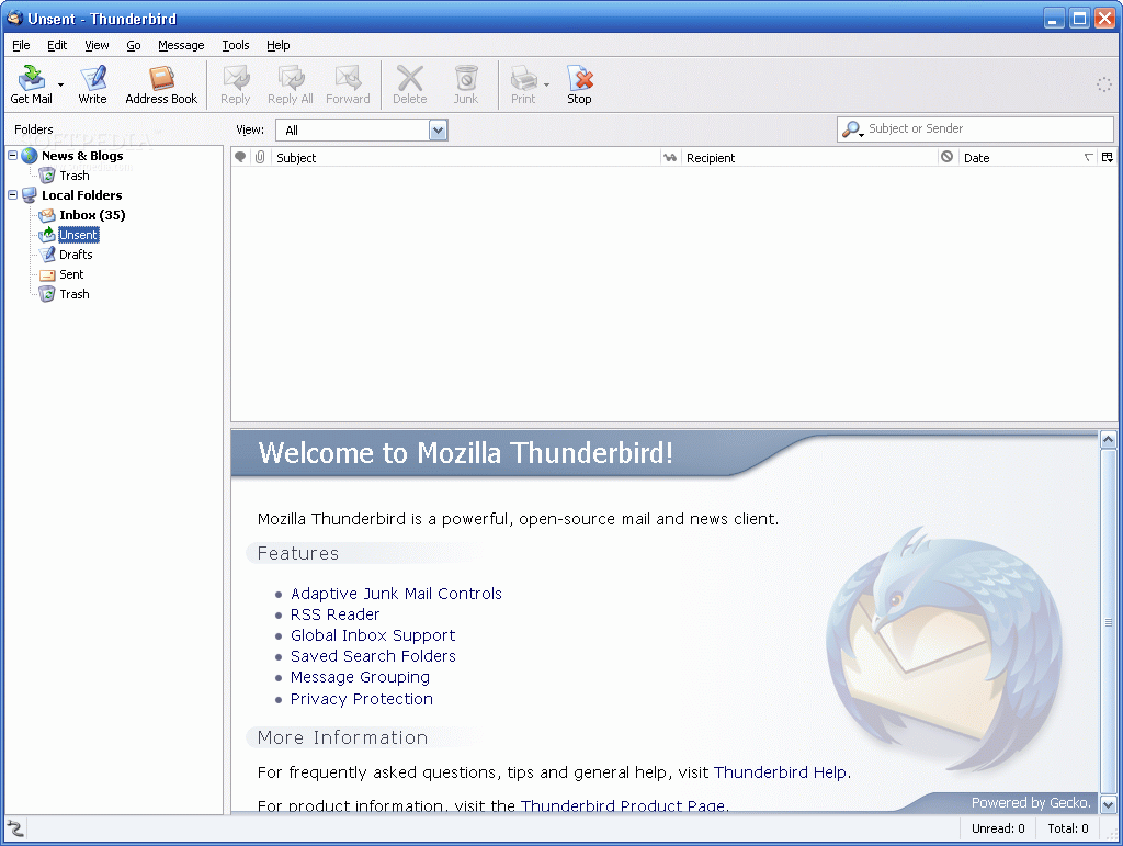 Ортодоксальный почтовый клиент, который был разработан компанией Mozilla еще в 2004 году. С тех пор он не сильно изменился. Принципы компании: