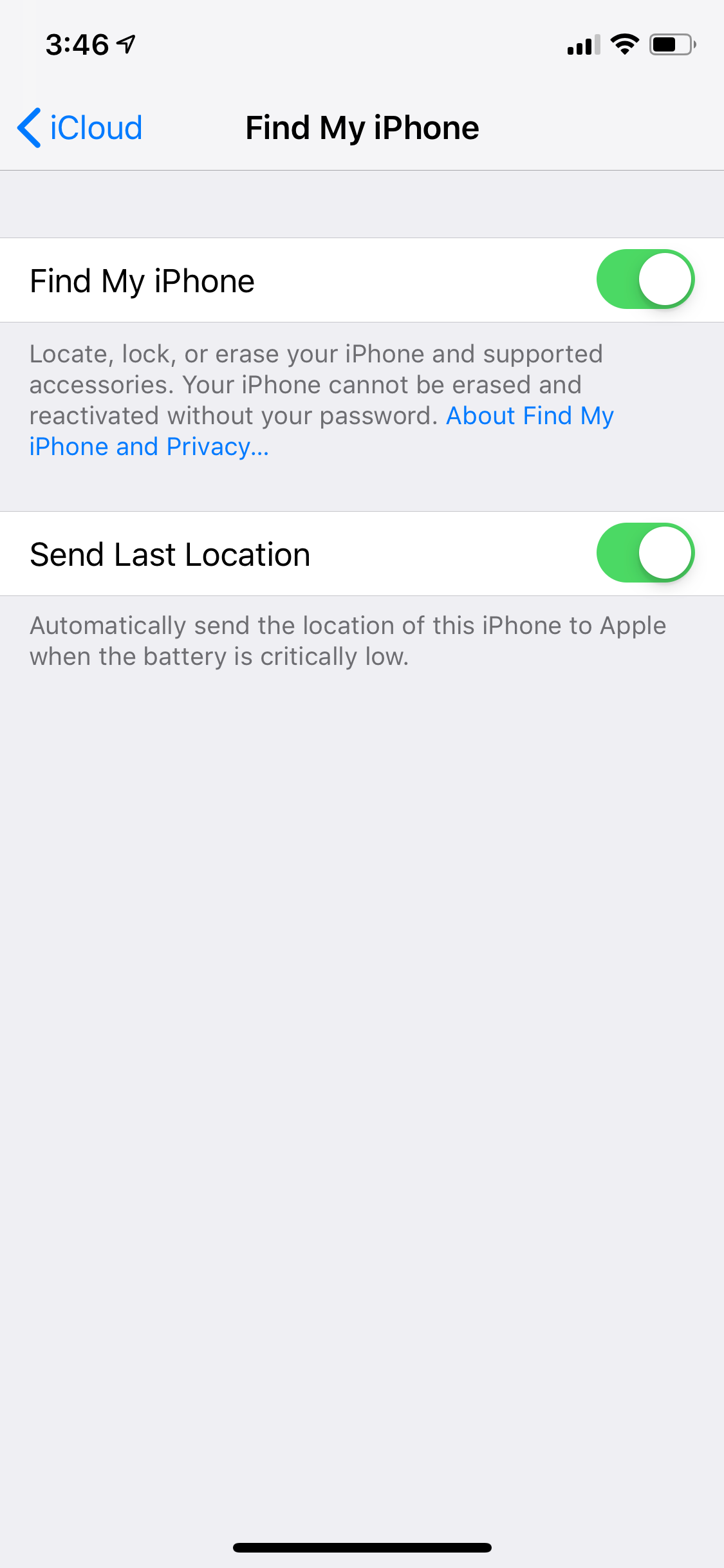 - Включите «Найти iPhone» и «Отправить последнее местоположение».