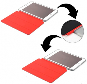 Наличие функции подставки позволяет располагать планшет на трех разных уровнях относительно поверхности для комфортного чтения, просмотра видео и веб-серфинга. Магнитная застежка удерживает крышку аксессуара, и под ее воздействием планшет переходит в спящее состояние. Обеспечивает доступ к внешним портам, слотам, и разъемам.