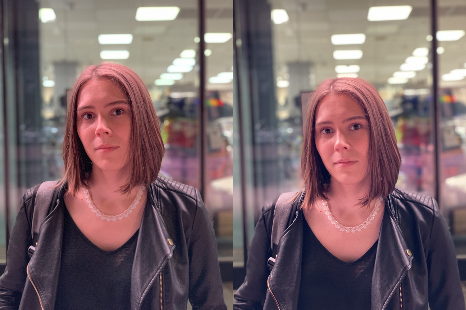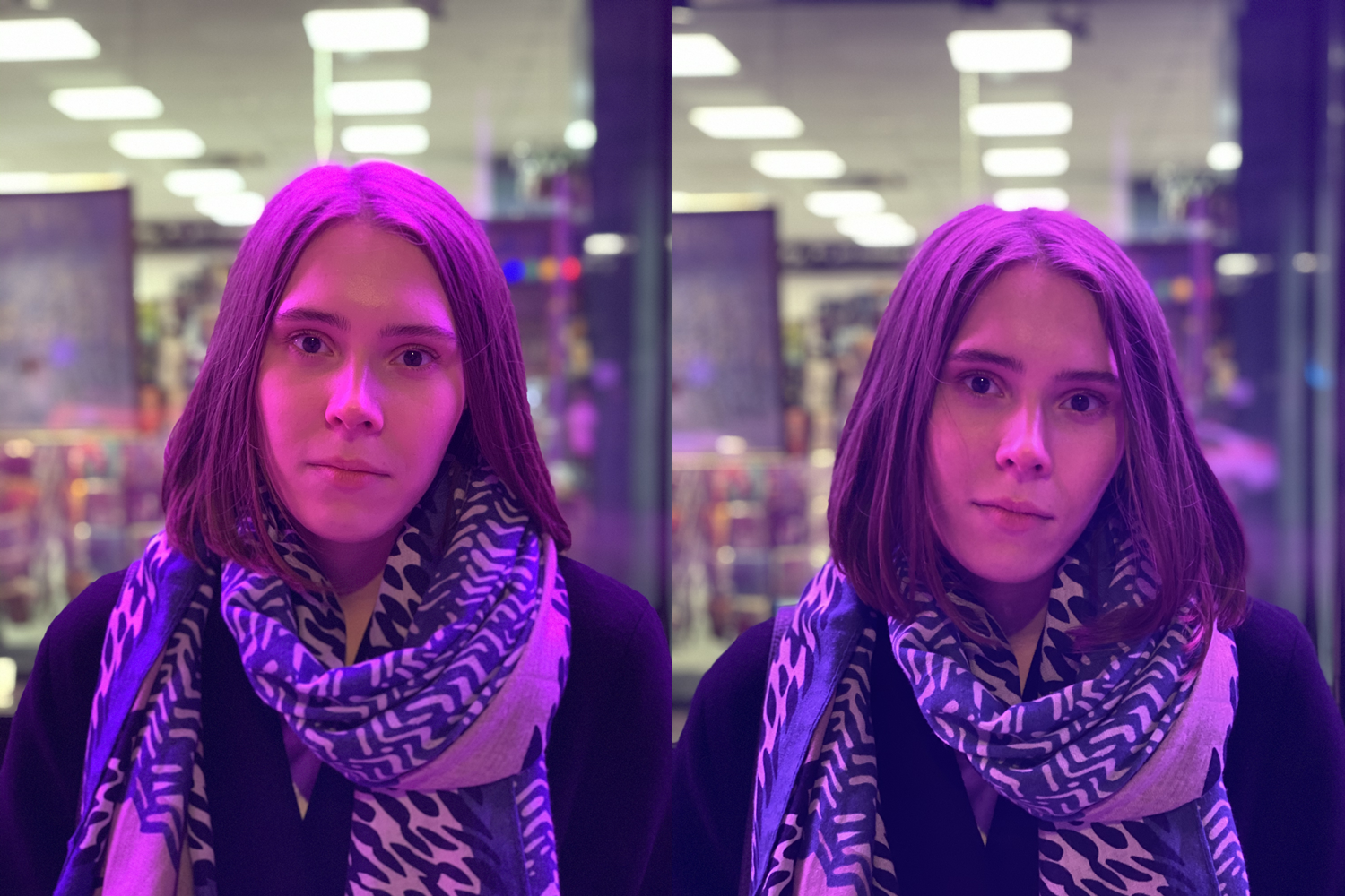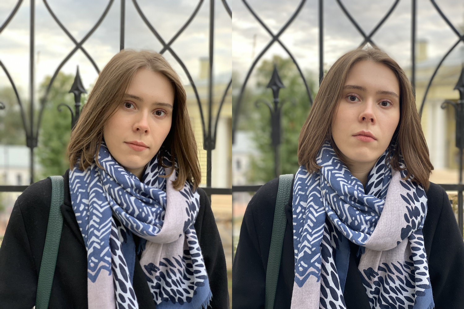 iPhone XS фокусировался на лице, но детали на периферии оказывались нечеткими. Это было незаметно, пока не появился новый айфон, у которого четкое не только лицо модели, но и детали на одежде. Рекомендуем в портретном режиме ставить фокус на лице вручную. Желательно выбрать точку и дождаться, когда телефон закончит фокусироваться. На автоматику полагаться не стоит: фотографии могут получиться нечеткими, особенно в темном помещении.