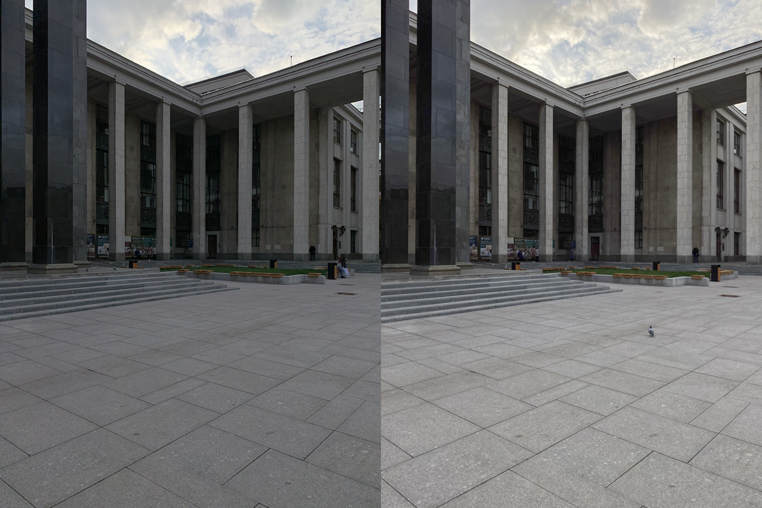 Широкоугольная, которая отдаляет сцену примерно в два раза. Но в этом материале ее не тестировали, потому что в iPhone XS такой не было, а значит и сравнивать тоже не с чем.