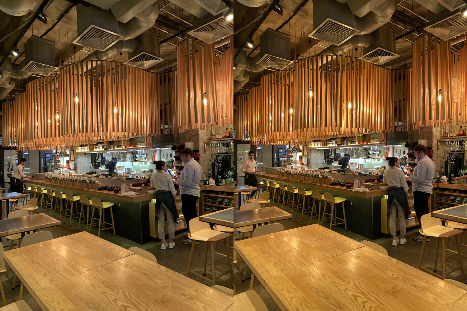 Здесь незаметно, но на потолке есть сетка. iPhone 11 Pro смог ее передать (ее можно разглядеть, если сильно увеличить), а iPhone XS — нет.