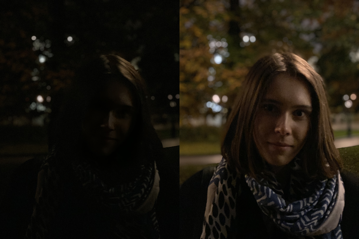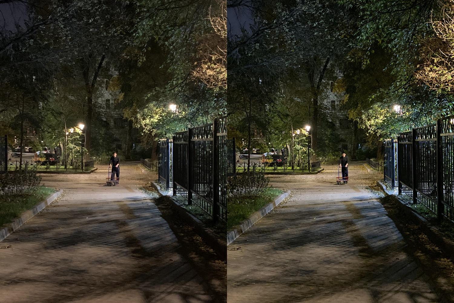 В темноте iPhone 11 Pro снимает с большей выдержкой и делает большое количество черновых фотографий — так темная сцена становится намного ярче. Его мы уже тестировали в «Мутаборе».