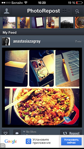 Работает на андроиде и айфоне. Позволяет создать рамку — отличительную черту многих изображений из инста; - instasize. Приложение адаптирует снимки, которые вы хотите разместить в инстаграм. Размер подбирается автоматически. Заливать фотки можно сразу из программы.