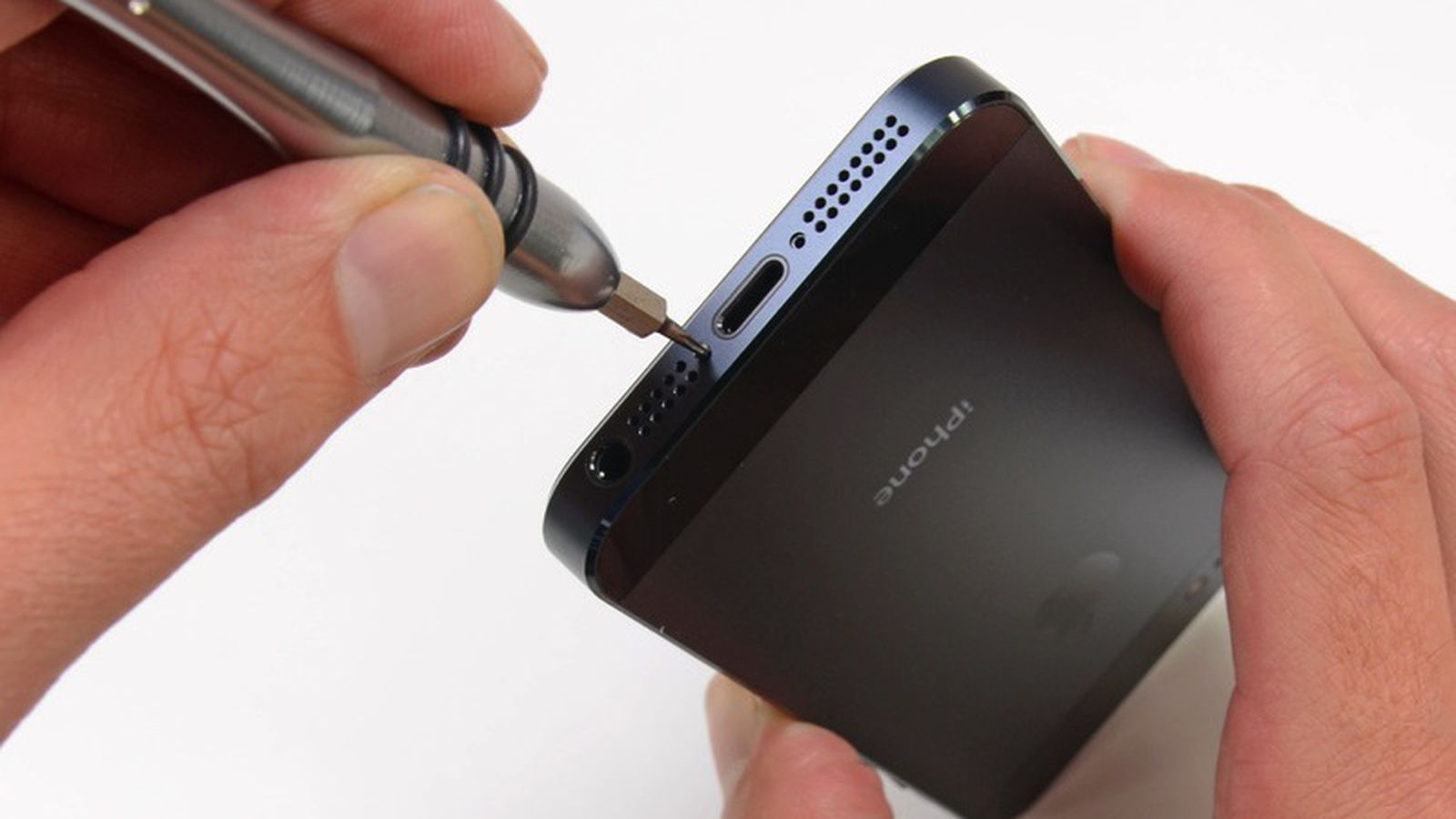 - «Айфон-4» снабжен двумя фиксирующими болтами с профилем “звезда”, которые находятся в нижнем торце мобильного устройства.