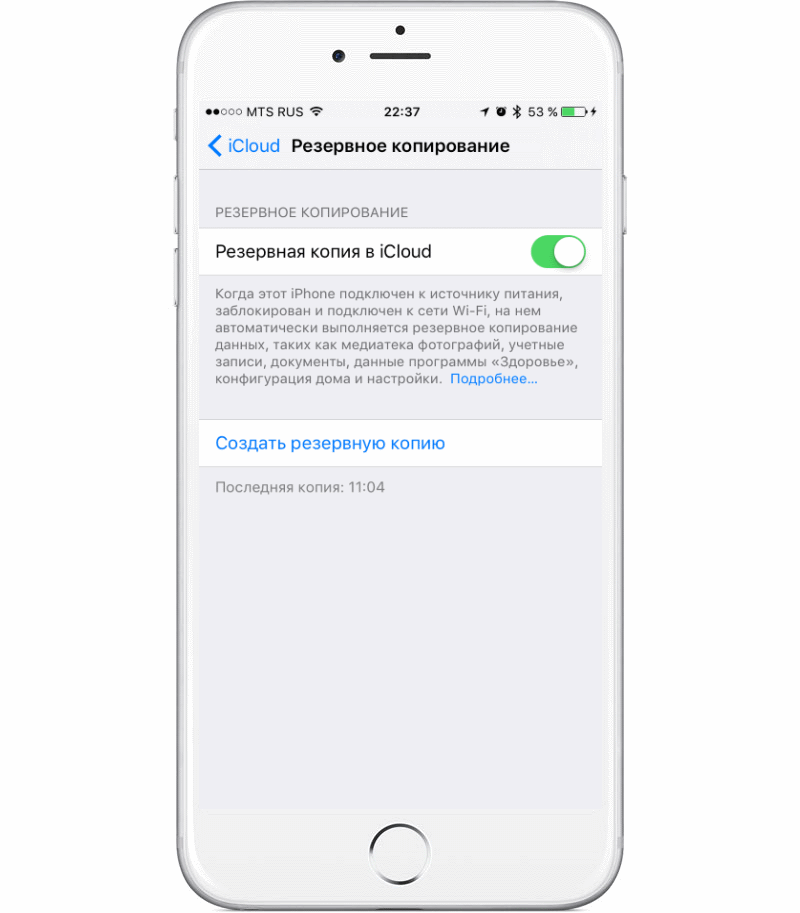 Создание резервной копии с помощью iCloud