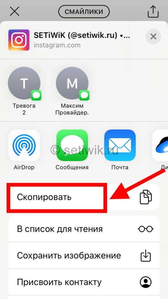 - Следом отобразится дополнительное меню, в котором потребуется выбрать конечное приложение. Это, конечно, Instagram.