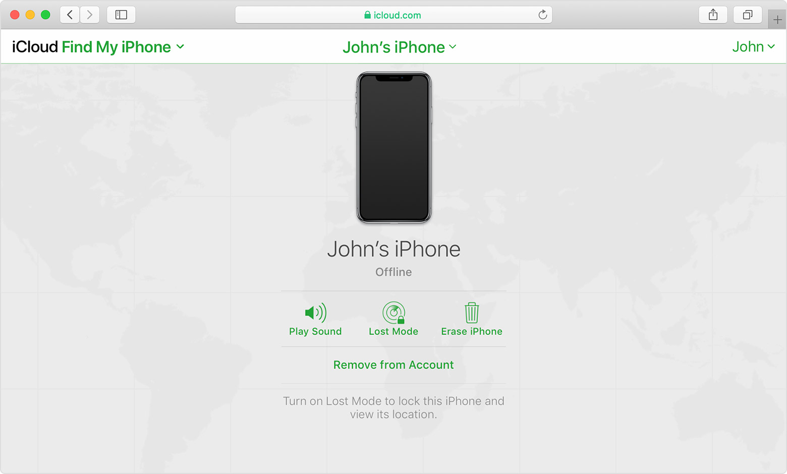 Теперь, зайдя на сайт https://www.icloud.com/#find можно управлять своим девайсом.