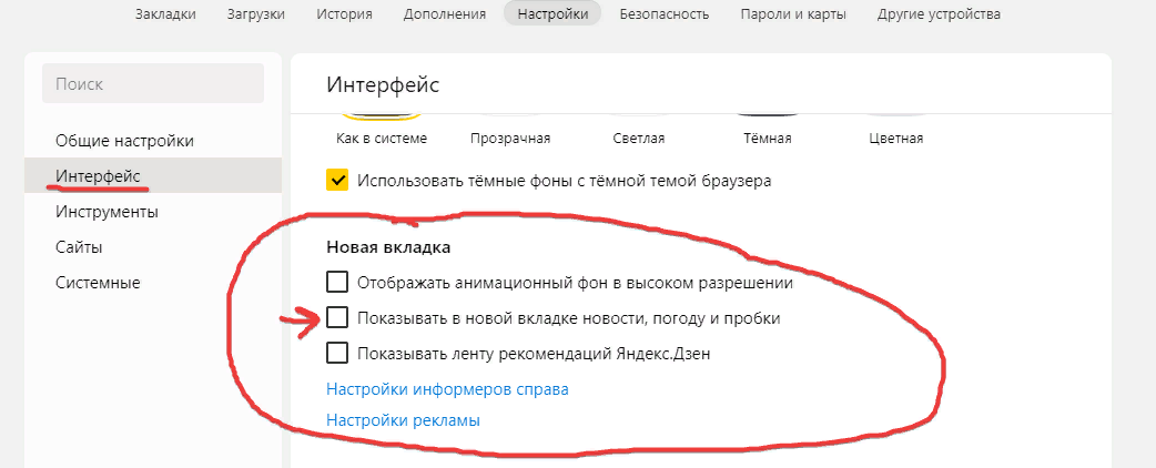 Настроив удобные параметры, перейдите в любой другой раздел сайта или обновите страницу.