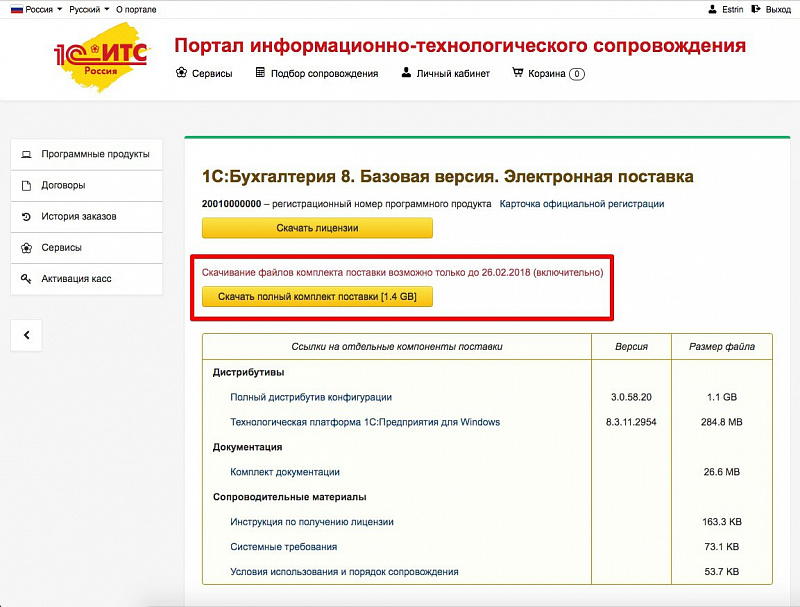 Шаг 23. Ссылка «Полный дистрибутив» не всегда есть в последних версиях. В этом случае вы можете обратиться к вашей обслуживающей организации — они предоставят полный дистрибутив на безвозмездной основе.