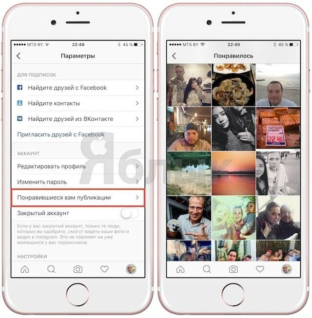 Итак, историю понравившихся публикаций в «Инстаграме» разработчики зачем-то спрятали в настройки.