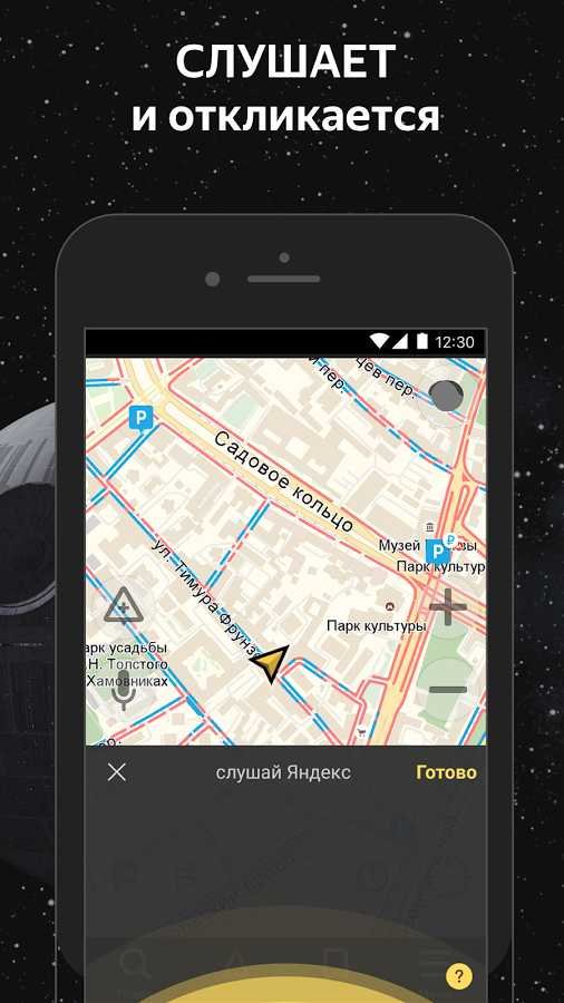 - Для полного удобства оставшиеся три пункта желательно оставить включенными. Голосовая активация поможет вам, не отрываясь от дороги, проложить маршрут. Достаточно произнести адрес места назначения после команды «Слушай, Яндекс» .
