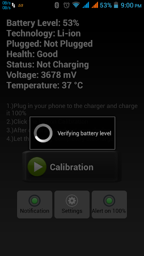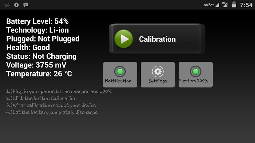 - Теперь установите приложение «Калибровка батареи» (Battery Calibration) и перед его запуском убедитесь, что аккумулятор заряжен на 100%, а затем перезапустите.