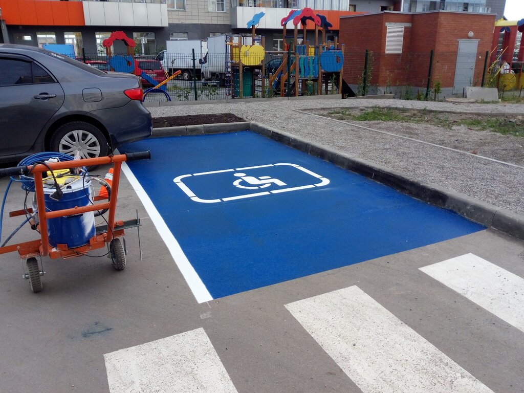 | 5 | Краска для нанесения на асфальт | Для простоты нанесения изображений через трафарет на асфальт или тротуарную плитку применяется специальная краска-спрей. | Для изображения стоянки для инвалида на асфальте. | |||