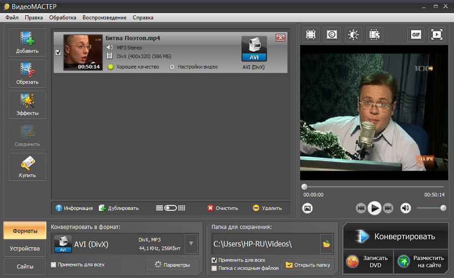 Обратите внимание, что приложение позволяет сохранить результат только в формате MP4, независимо от того, какое расширение было исходным. То есть, если вы хотите обрезать видео MP4 на компьютере, то вид вашего файла останется таким, каким был. Если файл изначально в MOV, MKV и других расширениях – будьте готовы к изменениям.