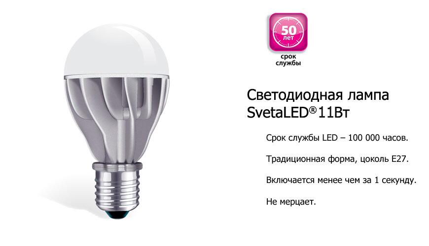 - Долгий срок службы светодиодных ламп (типично 50 тысяч часов) выгодно отличают их от люминесцентных