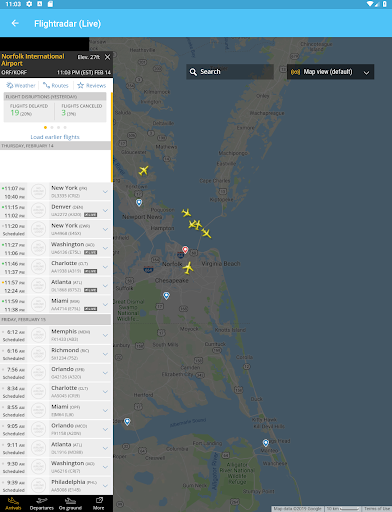 • Нажмите на значок аэропорта, чтобы увидеть табло прилета и вылета, статус полета, самолет на земле, текущую статистику задержек и подробные погодные условия.