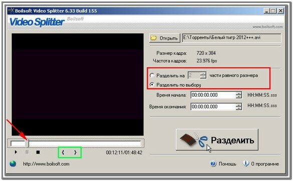 - Вы можете разделить большой видеофайл на маленькие видео.