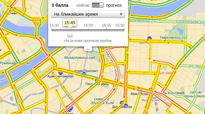 желтый — информация о загруженности дорог не обновлялась в течение длительного времени;