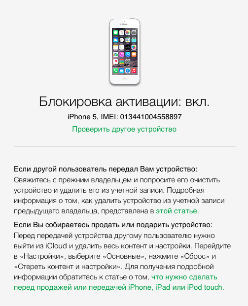 Проверка состояния блокировки активации. Теперь нельзя проверить в iCloud, украден ли iPhone.