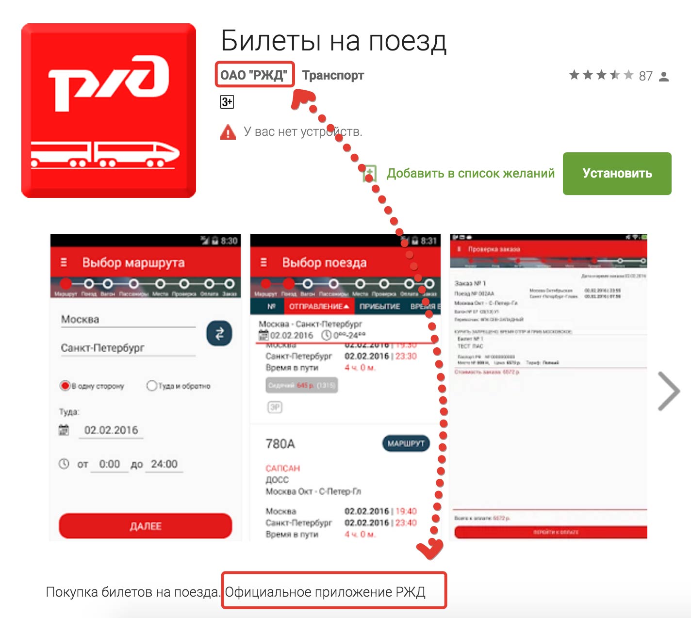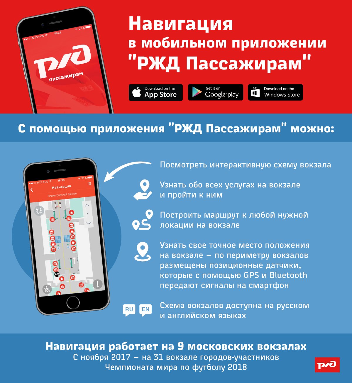Мобильное приложение «ЖД Билеты» позволяет при помощи смартфона найти и купить билет на поезд, подобрать подходящее время отправления, выбрать удобное место в вагоне, заказать дополнительные услуги. Оплата билета производится банковской картой. После покупки билета с электронной регистрацией, вы можете пройти на посадку, предъявив проводнику паспорт, а также билет на экране мобильного или в распечатанном виде.