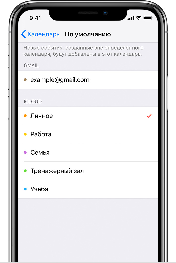 Выберите календарь iCloud в качестве используемого по умолчанию.