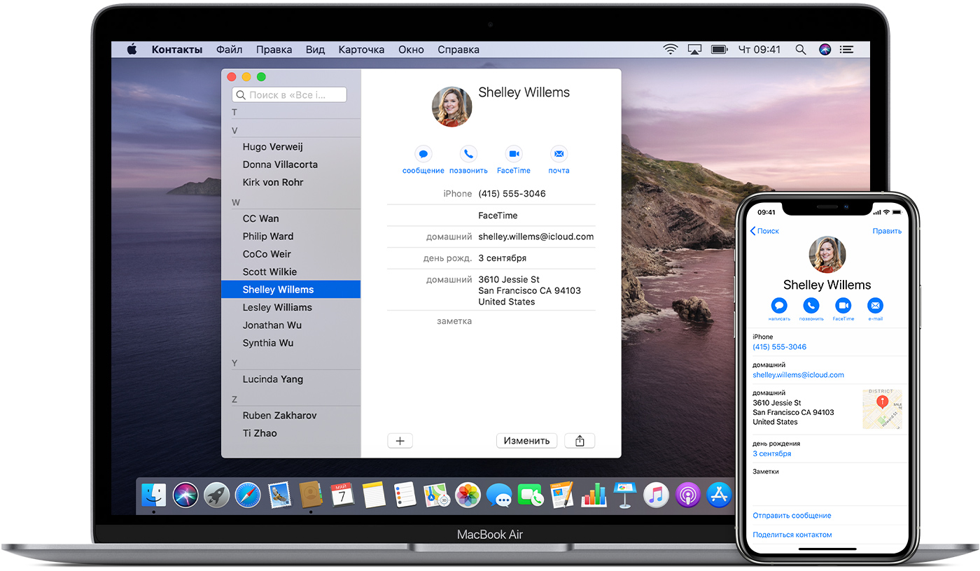 Благодаря iCloud ваши контакты всегда доступны на мобильных устройствах и на компьютерах. Когда вы добавляете или обновляете контакт, iCloud делает это изменение доступным на всех устройствах.