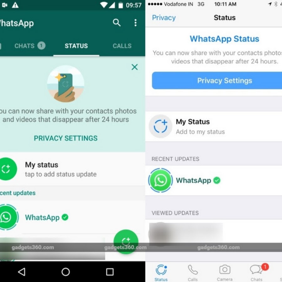 - Откройте WhatsApp и выберите вкладку «Статус».