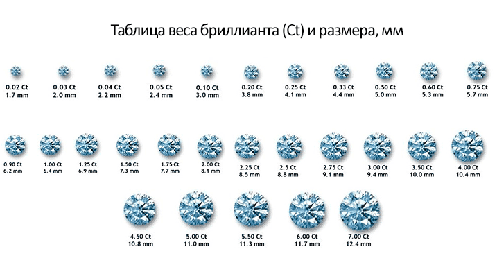 Вес бриллианта — Размер бриллианта. Таблица соотношения